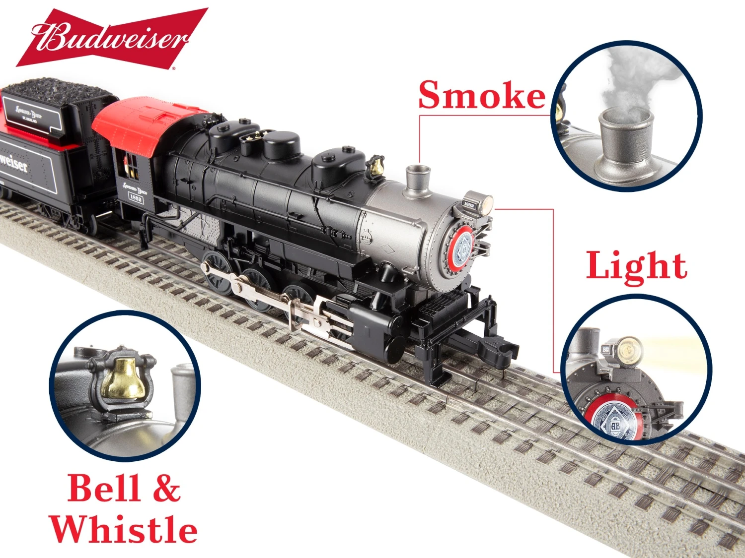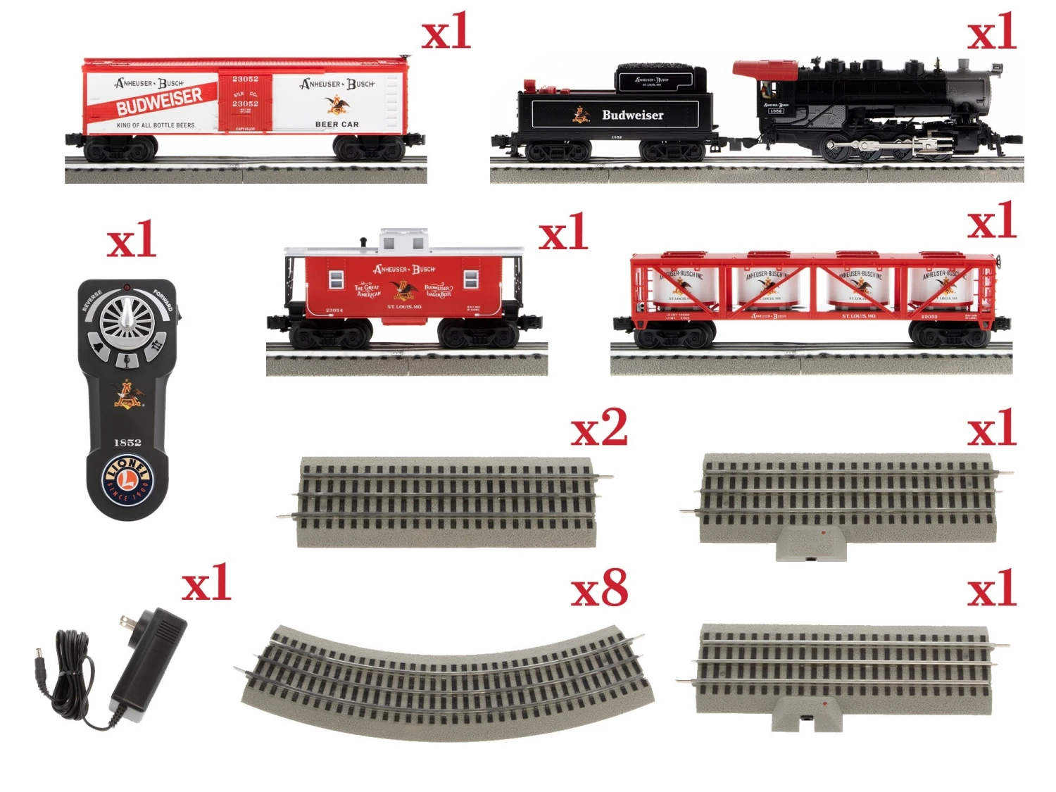 There’s something about the classics and this Anhueser Busch LionChief set is nothing short of that. Including an Anheuser Busch 0-8-0 Locomotive and tender, a Budweiser Reefer, an Anheuser Busch Vat car, and an Anheuser Busch Caboose, this set is sure to be a staple piece on your layout. ADULT COLLECTIBLE NOT INTENDED FOR SALE TO INDIVIDUALS UNDER 21 YEARS OF AGEThis product is intended for purchase by persons of legal alcohol purchase and drinking age.Budweiser®, Bud® are registered trademarks of Anheuser-Busch, Inc., used under license by Lionel®