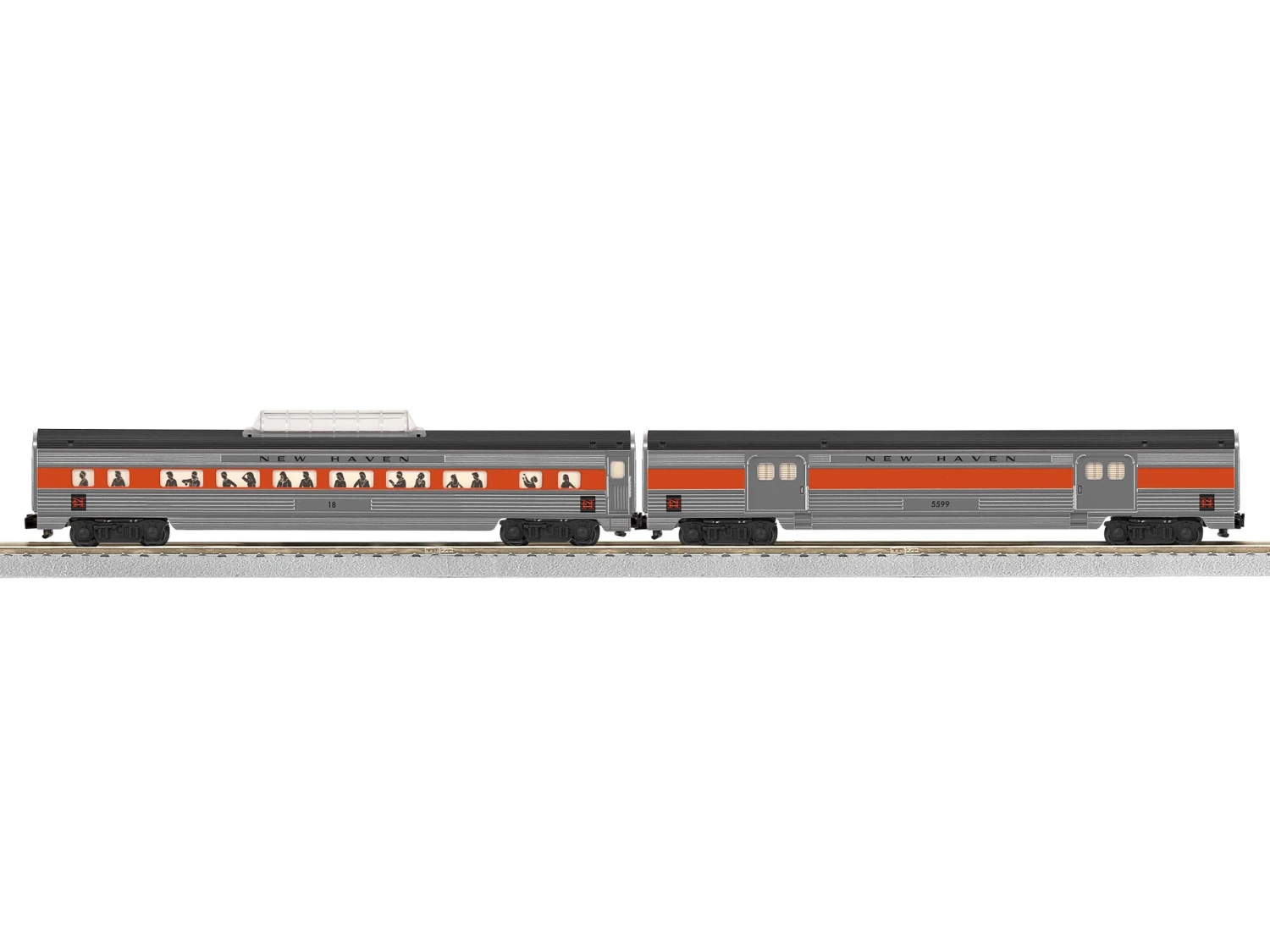 - Die-cast trucks and operating couplers